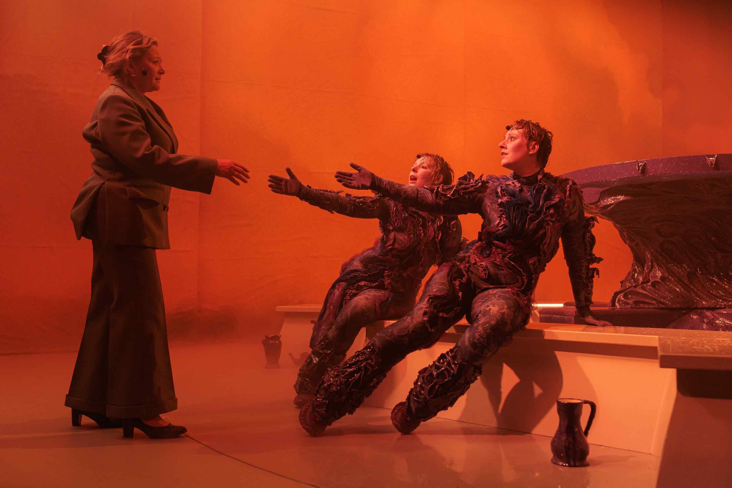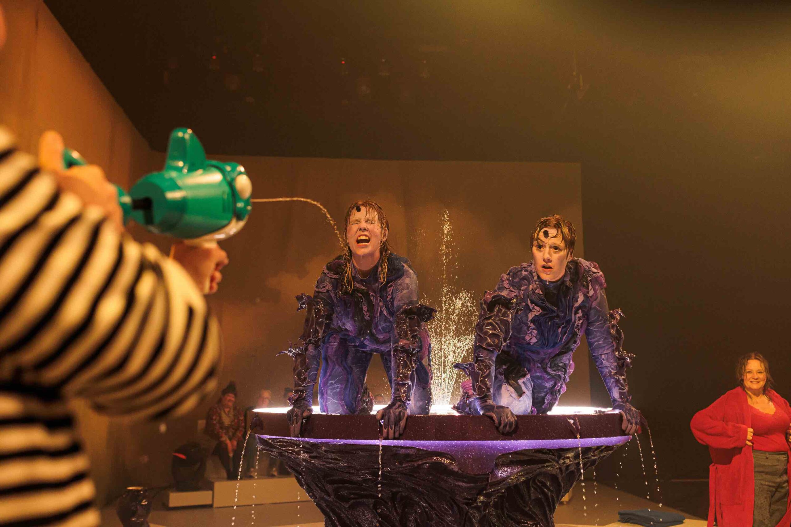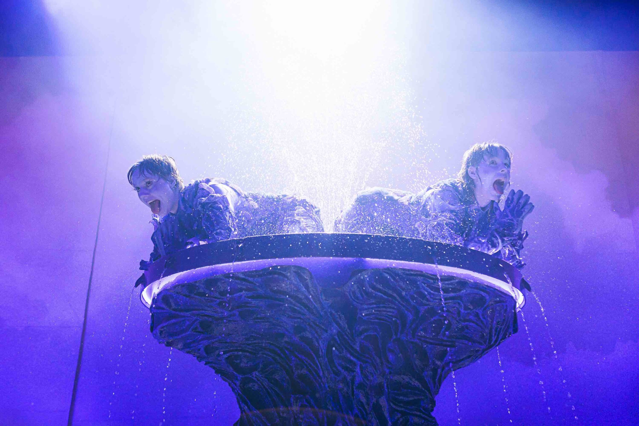 Helsingin Kaupunginteatteri – Nykyesityksen näyttämö – Agora – kaksi merenneitoa tyhjässä altaassa – Kuvassa – Kuva Jussi Ulkuniemi