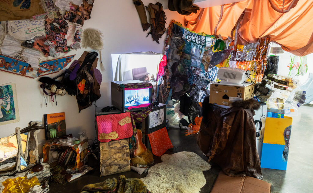 Rag Elnyg, installaatio Nuoret 2023 -näyttelyssä, Muu Helsinki nykytaidekeskuksessa. Kuva: Johanna Naukkarinen.