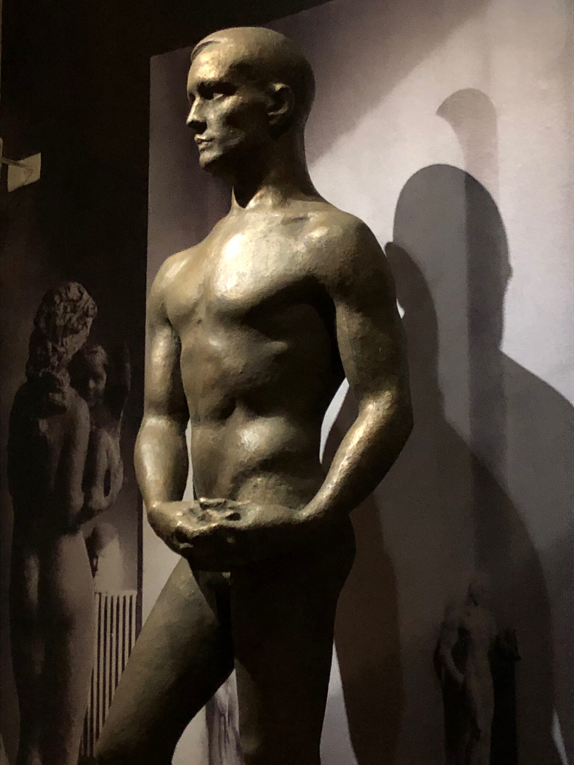 Oikeastaan poseeraamisen ajatuksen herätti minulla jo aiemmin keväällä Tampereen taidemuseossa Del LaCrace Volcanon queer-yhteisöiden pitkäkestoisen kuvaamisprojektin paraati, joka sattumalta tai tarkoituksella rinnastui oudosti yläkerrosten Wäinö Aaltosen näyttelyyn, jonka lukuisat alastomat, kehollisesti ihanteellisiksi tyylitellyt symbolihahmot ovat tietenkin ihanteellisessa nationalismissaan nykyiselle poliittiselle vastarintaiselle kehollisuudelle äärimmäinen vastakohta – mutta kuitenkin olemisen tavaltaan sille yllättävän läheisiä, ylpeänä poseerattua asiaa. Joten, jos ihannekehoa halutaan nykyaikaistaa, voidaanko se tehdä vain hyvältä näyttämisellä? Toisaalta queer- ja trans-teemaisissa näyttelyissä ollaan vielä aika usein reportaasin asteella. Näytetään, että tämmöiseltä me näytämme, tai ainakin: näin me haluamme tulla nähdyksi.