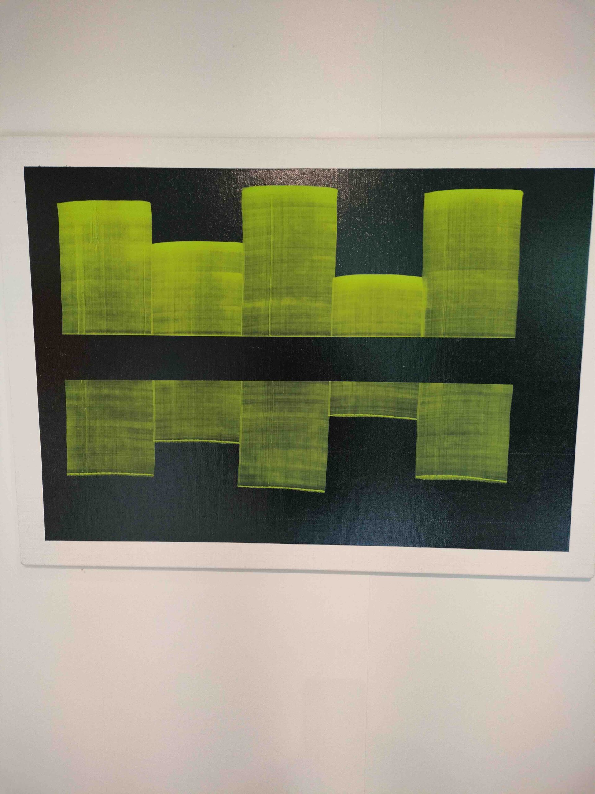 Alakerrassa näyttelyn avaa Tilpon teos Parc Monceau (1923). Pseudonyymin takana on suomalaissyntyinen lavastustaiteilija Hanna Aihonen ja ruotsalainen taidemaalari Hans Eriksson, joiden näyttelyn Kenetti toi Galerie Anhavalle pari vuotta sitten. Maalaus esittää pariisilaista huvipuistoa. 1700-luvulla soikean lammikon reunustalle asetettu pylväikkö voisi vertautua vaikkapa samalta aikakaudelta peräisin olevaan kartanoon. Tilpon maalauksista huomioni kiinnittyi erityisesti Tasapaino-maalaukseen (2022). Ensi näkemältä se toi mieleeni Salvador Dalín ikonisen Muiston pysyvyys -maalauksen (1931). Hauskan yhtymäkohdan Tilpon teoksessa muodostavat näyttämöllä oleva kanarouva ja katsomossa istuvat rouvat kananmunan valkuaista ja keltuaista matkivine hattuineen. Eräänlaisesta muiston pysyvyydestä tässäkin on kyse.