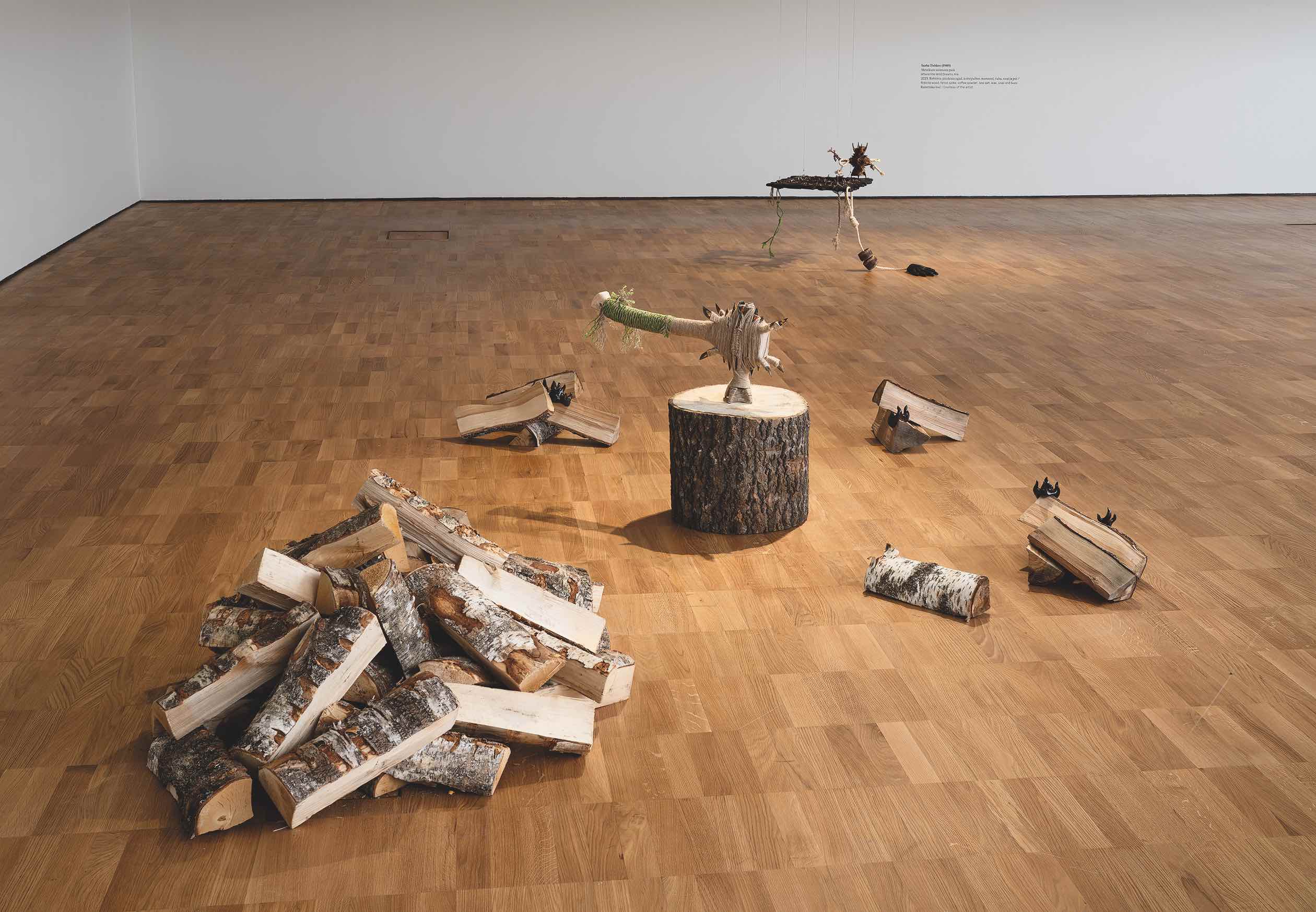 Kasoja voi nähdä myös museoiden lattioilla. Tallinnan Taidemuseo Kumun kansainvälisten taiteilijoiden töistä koostetussa They Began to Talk -ryhmänäyttelyssä oli viime keväänä mukana Sasha Tishkovin Abandoned Axe, Probably Left There by Some Folkloric Creature. Teos käsitteli globaalia viilenemistä ja muita nykyhetken skenaarioita alkukantaisten selviytymiskäytäntöjen, kuten puun pilkkomisen ja tulen tekemisen välityksellä, ja siihen kuului kasa halkoja.