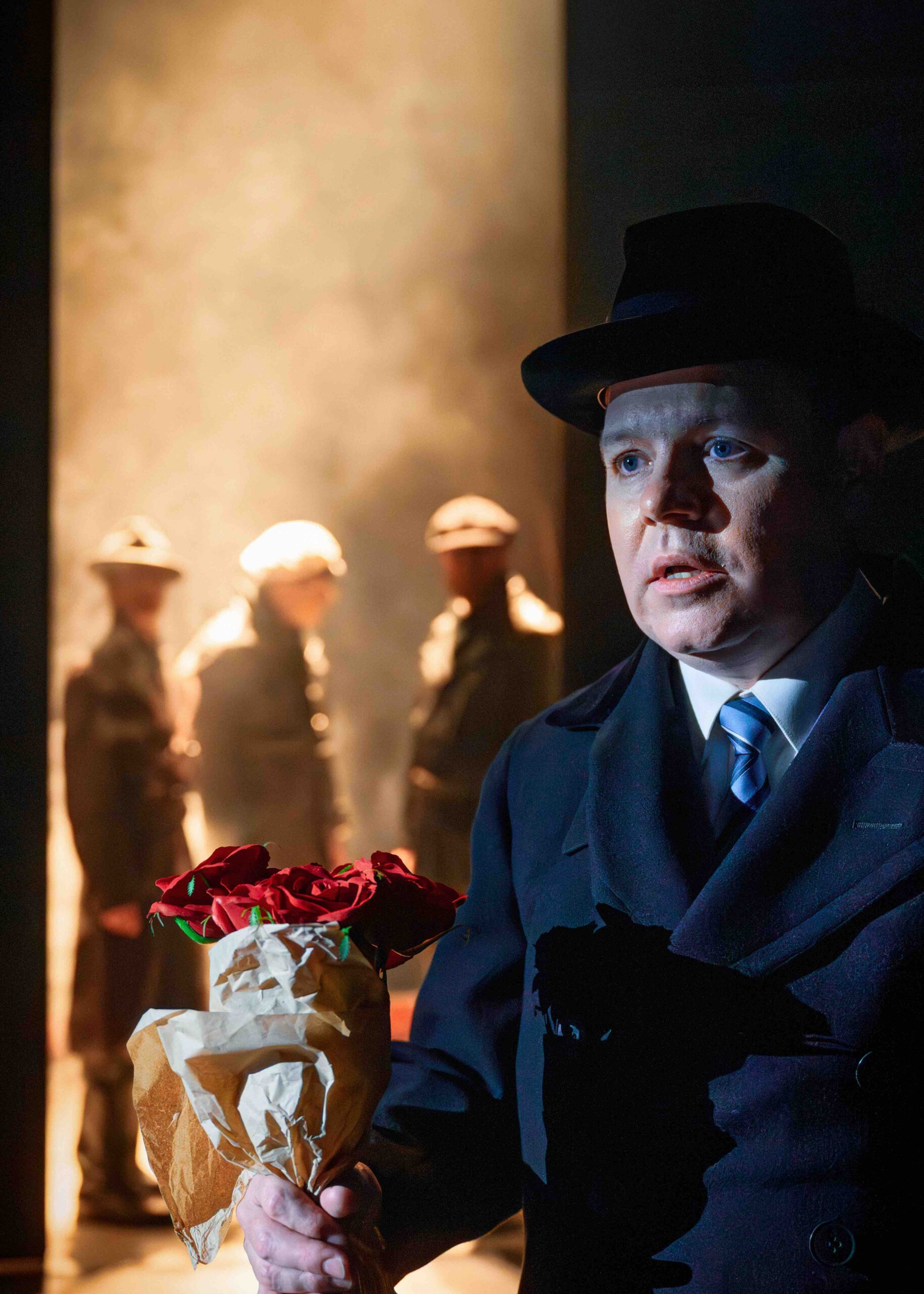 Taiteista Amos Anderson suhtautui intohimoisimmin musiikkiin ja erityisesti teatteriin ja Svenska Teaterniin. Näytelmä alkaakin Svenskanin kenraaliharjoituksista, missä Anderson ohjaa itse kirjoittamaansa näytelmää (!).