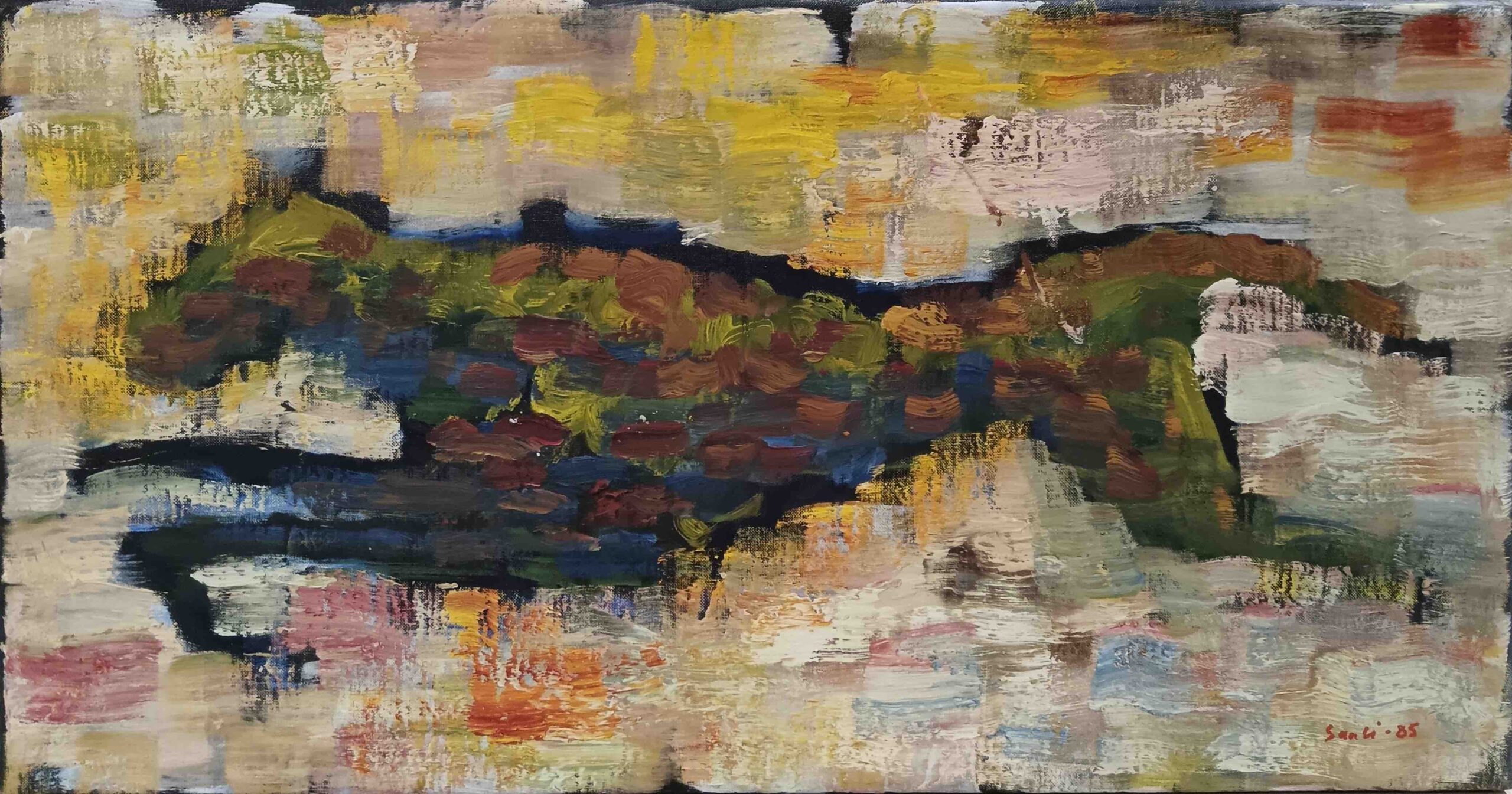 Tuomo Saali, Nimeämätön, 1985, öljy kankaalle, 45 x 86 cm.