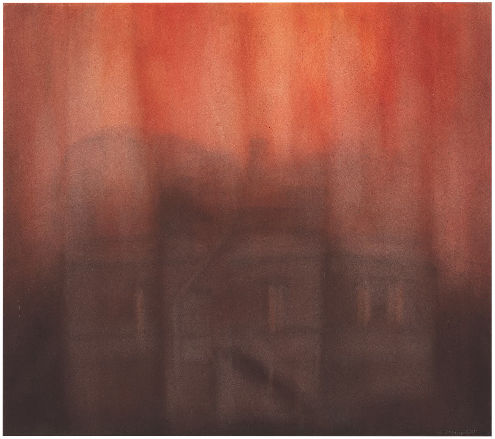 Senja Vellonen, Palava talo, 2025, akvarelli paperille.