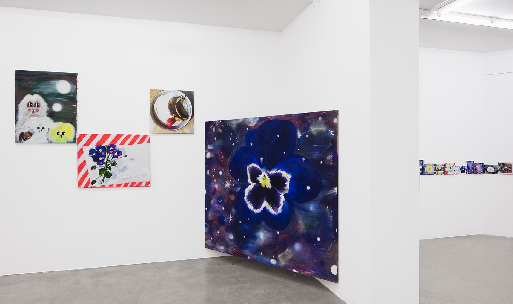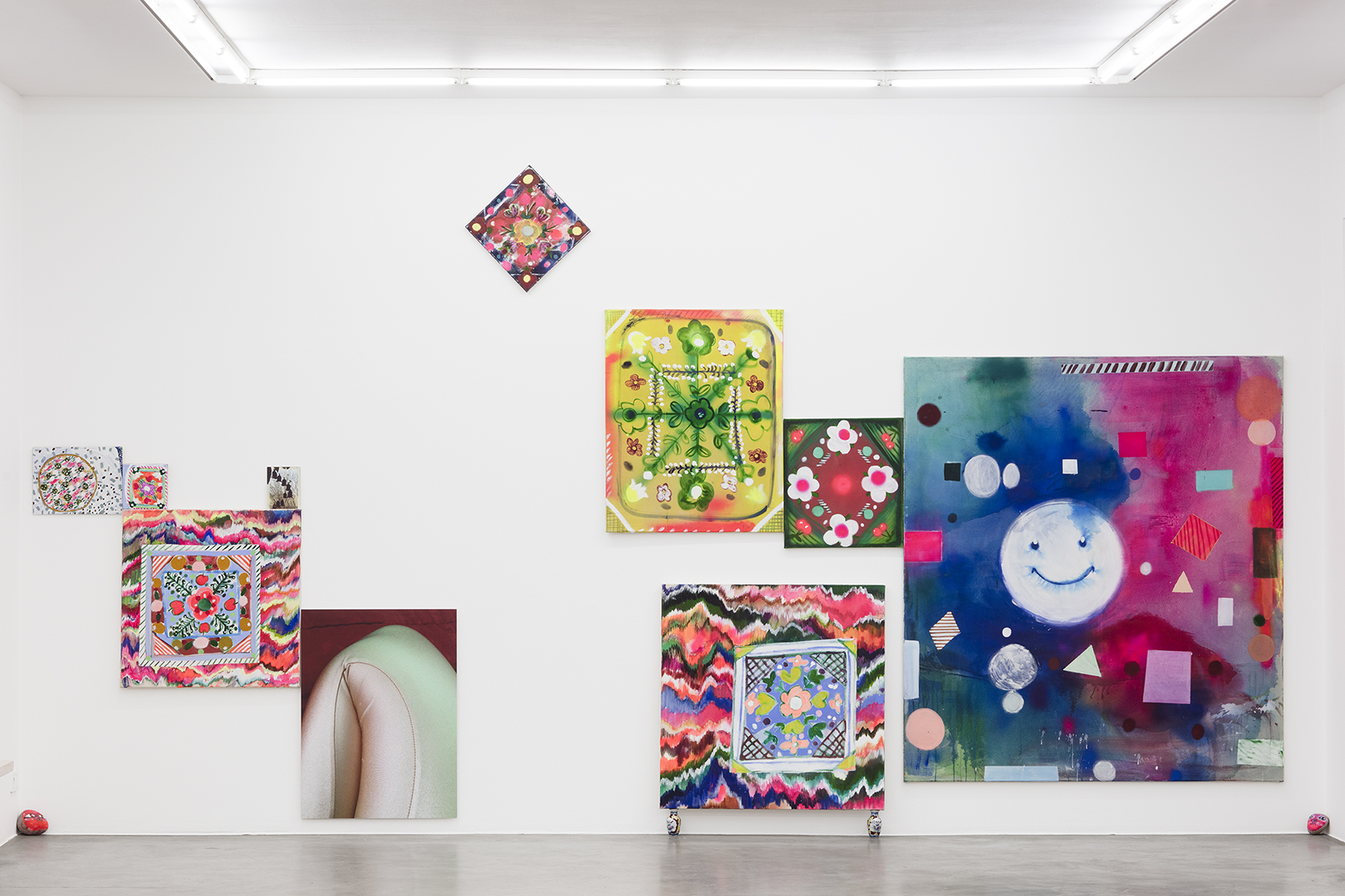 Lempikohtani näyttelyssä on kuitenkin Holiday– ja Pallo-sarjan teoksista koostuva installaatio, joka tuntuu kuin portilta ihmemaahan. Tämän valossa myös pinkit kivikissat tuovat mieleen Irvikissan Liisa Ihmemaa -sadusta. Nurkkauksen lattialla on lautanen, jossa on iso hymiö, ja lattialla vaasi, jossa oikeita kukkia. Lukuisat yksityiskohdat luovat näyttelystä hyvin tarkkaan mietityn, persoonallisen kokonaisuuden. Tila on otettu itsevarmasti ja leikitellen haltuun. Holiday-sarjan sahalaitaiset teokset tuovat mieleen revontulet, mutta myös mielleyhtymän Kiasmassa 2019 esillä olleisiin islantilaisen Shoplifterin karvaisiin teoksiin.