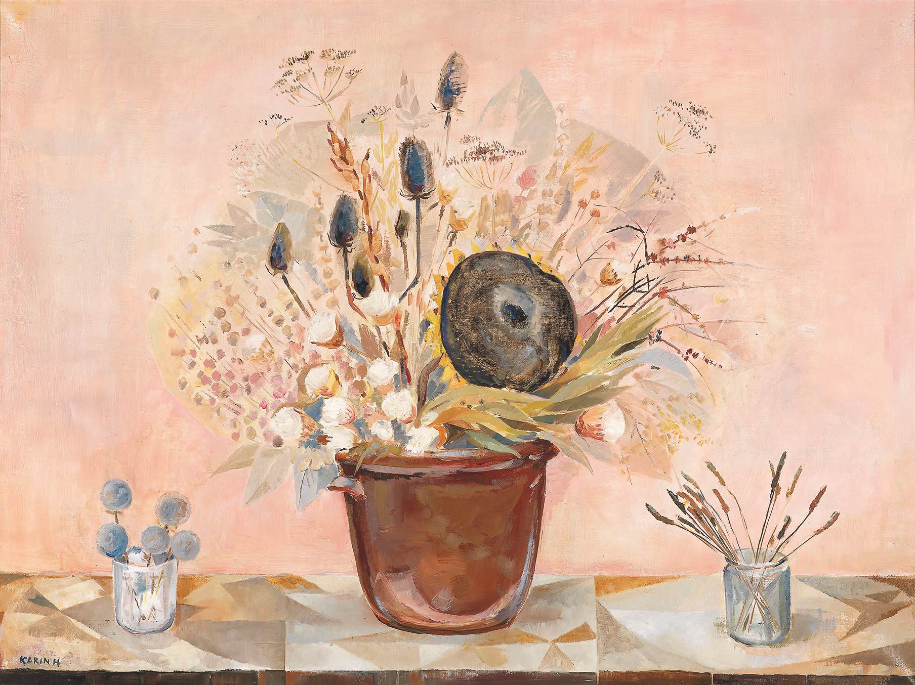 EMMAn toinen hieno näyttely nostaa pökerryttävän suurella volyymilla esille vielä yhden naistaiteilijan, Karin Hellmanin (1915–2004) maalarina, joka lähestyi 1950-lukulähtöisellä elegantilla uusasiallisuudellaan parhaimmillaan havaitun todellisuuden kantamaa tiettyä jopa surrealistista vivahdetta. Ihmiset, kukat tai esineet näyttäytyivät painokkaina.